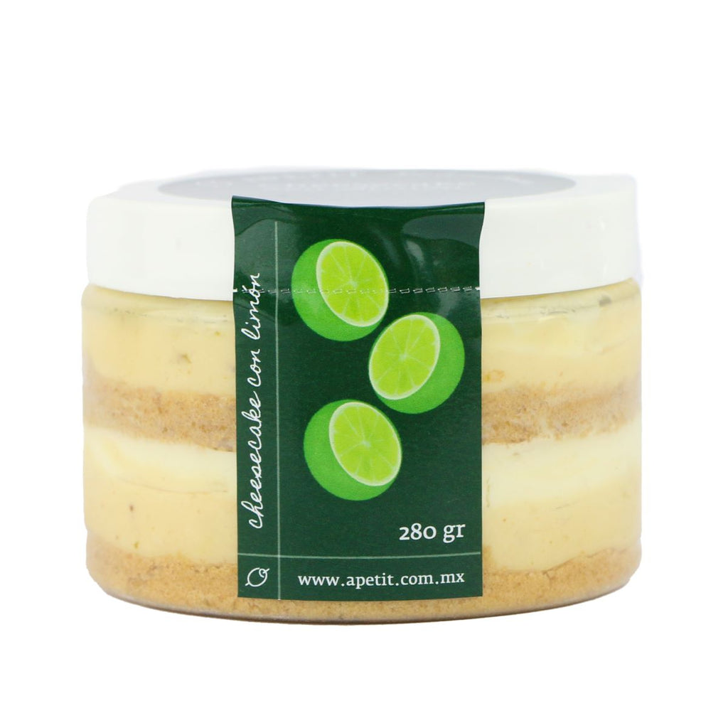 Bote relleno con capas de cheesecake a base de queso crema, rebanadas de plátano, cajeta y nuez en trozos.