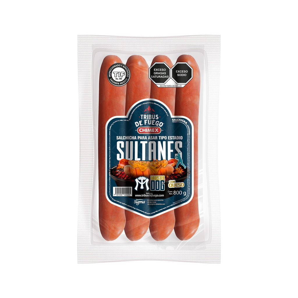 Salchicha para asar con queso tipo estadio Sultanes, ideal para poner en el asador, llevando la experiencia del estadio hacía tu casa y consentir a tus invitados.