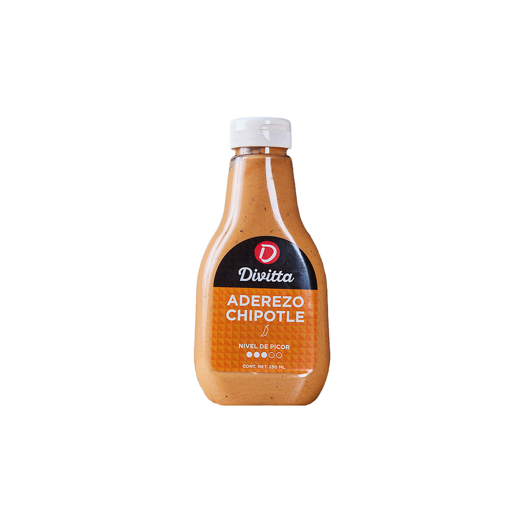 Aderezo de chipotle marca Divitta®. Un aderezo cremoso y ligeramente ahumado, perfecto para darle un toque especial a tus platillos. Cont. NET 250g.